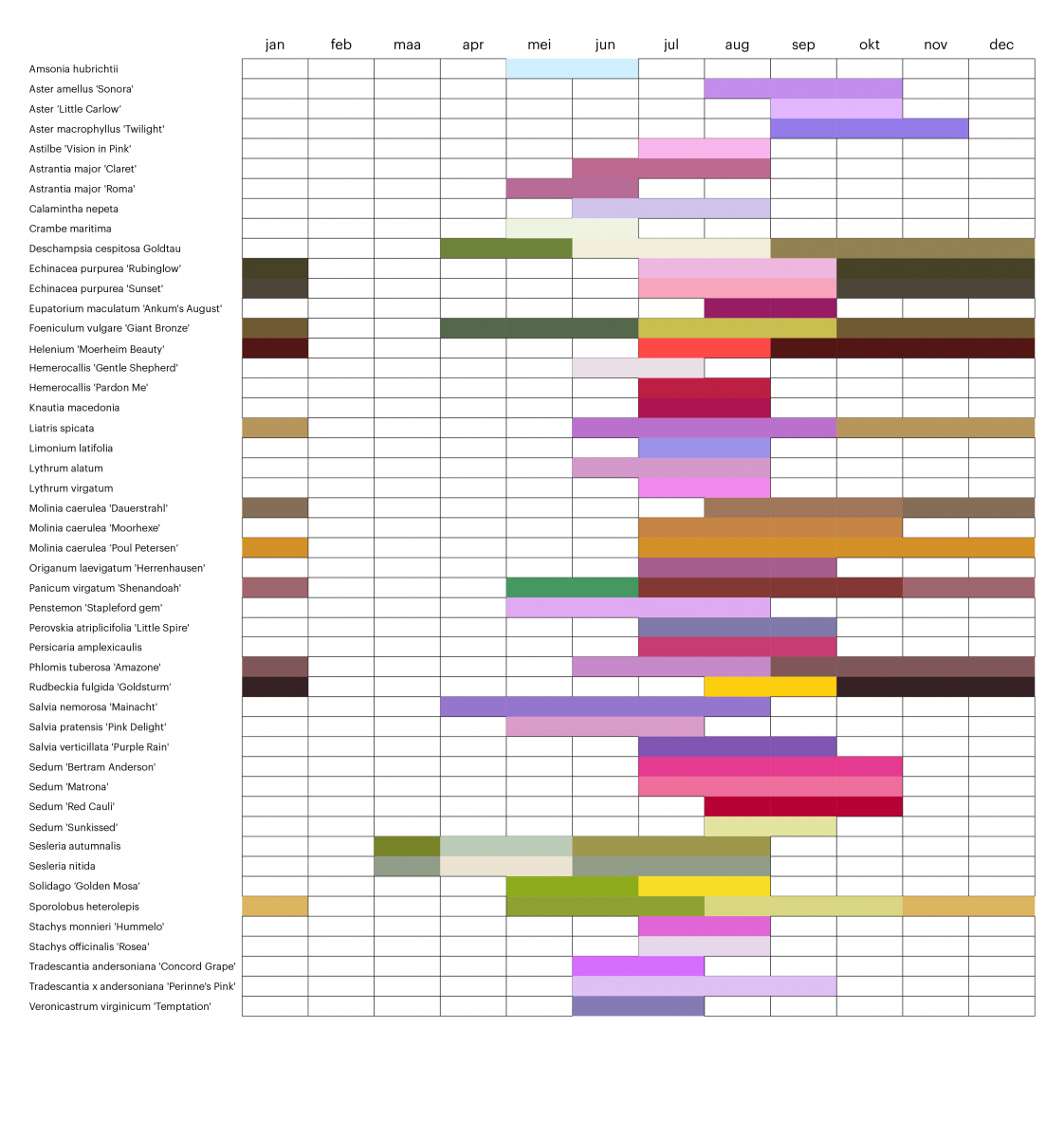 beplantingslijst met bloeikleur